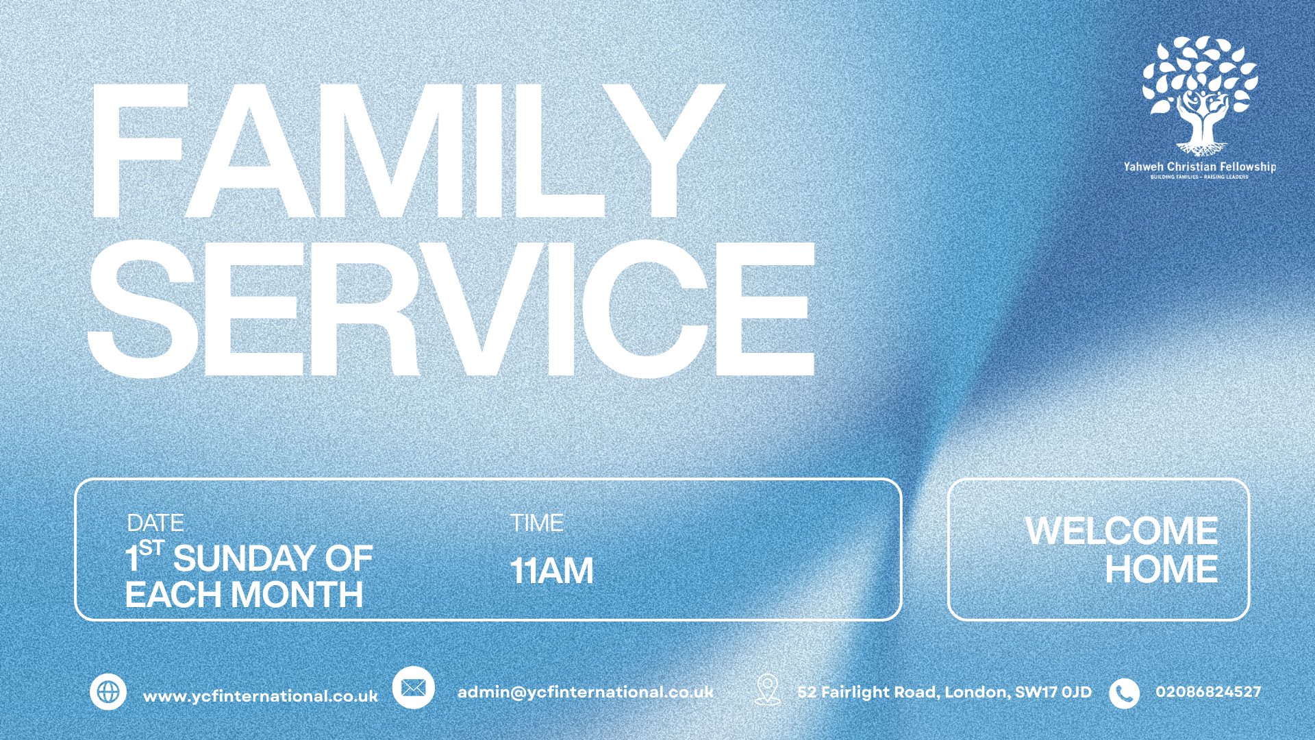 The service will last approximately 2 hours with a brief time for one-to-one fellowship during the service.