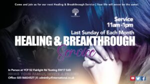 Come and join us for our Healing & Breakthrough Service.